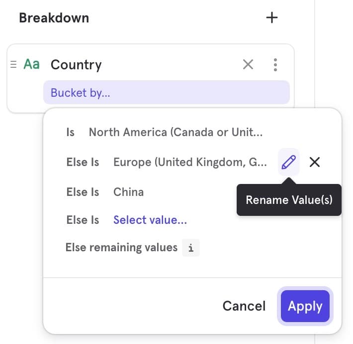 Custom buckets let you group existing properties into meaningful segments on the fly. This is focused on enabling every person to answer common segmentation questions easily, quickly, and in a low-friction way.
